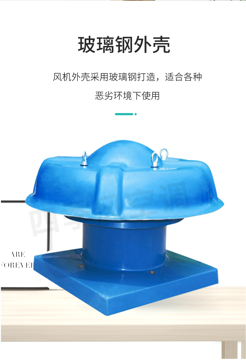 靖江市四季風(fēng)空調(diào)設(shè)備有限公司——DWT系列軸流式屋頂風(fēng)機(jī)分為二大類型,其一,軸流式屋頂風(fēng)機(jī):型號(hào)為DWT-II型、DWT-III型二種形式,宜適用于風(fēng)量較小而壓力要求較高的場(chǎng)合。